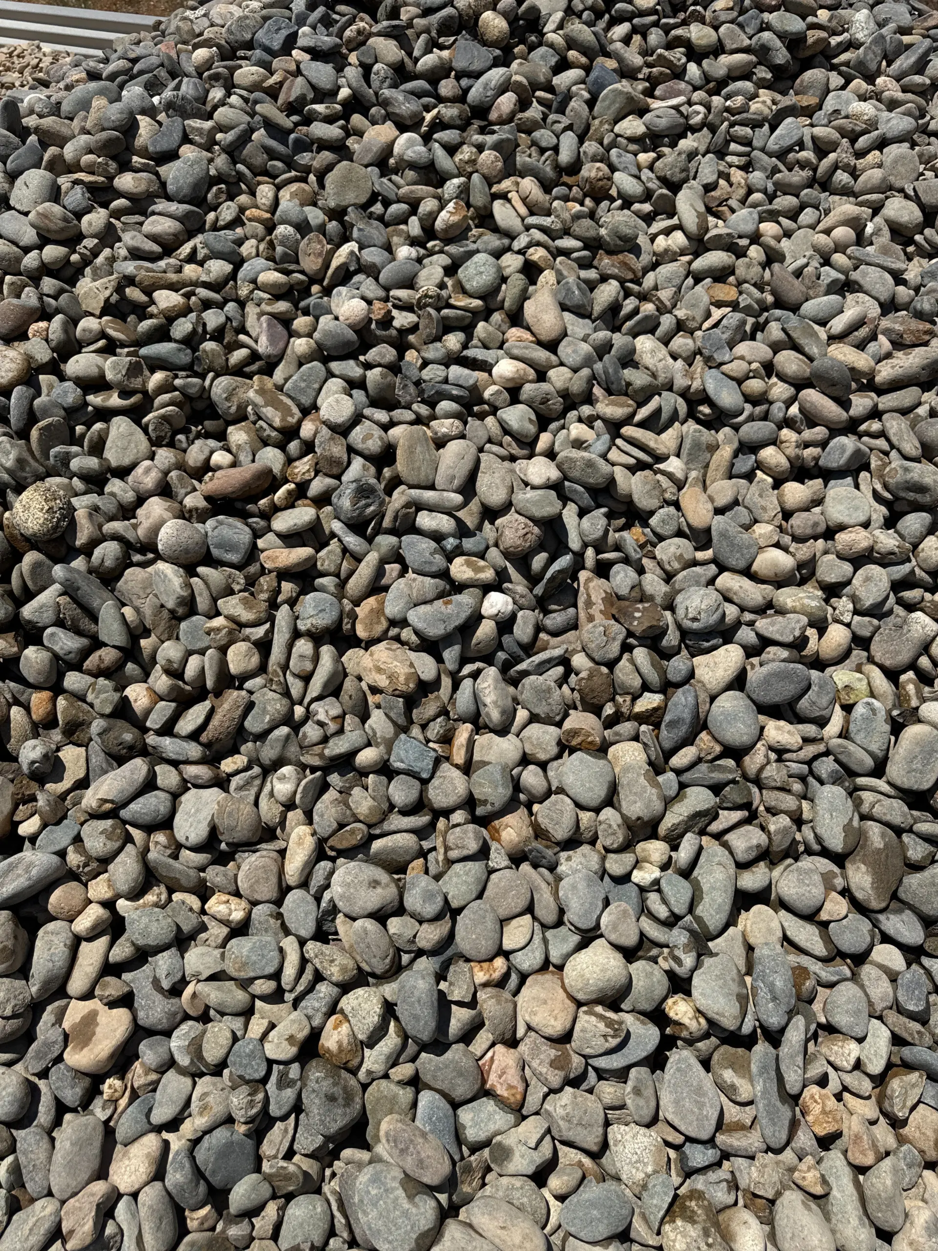 The 1 1/2″ River Rock is a versatile and decorative stone used in landscaping and drainage applications. It is available in a mix of muted colors, including tans, reds, whites, blues, and grays, and is smooth with a rounded texture. This stone is ideal for areas where mulch would wash away, such as steep slopes, and is also used to prevent erosion in high-flow areas.