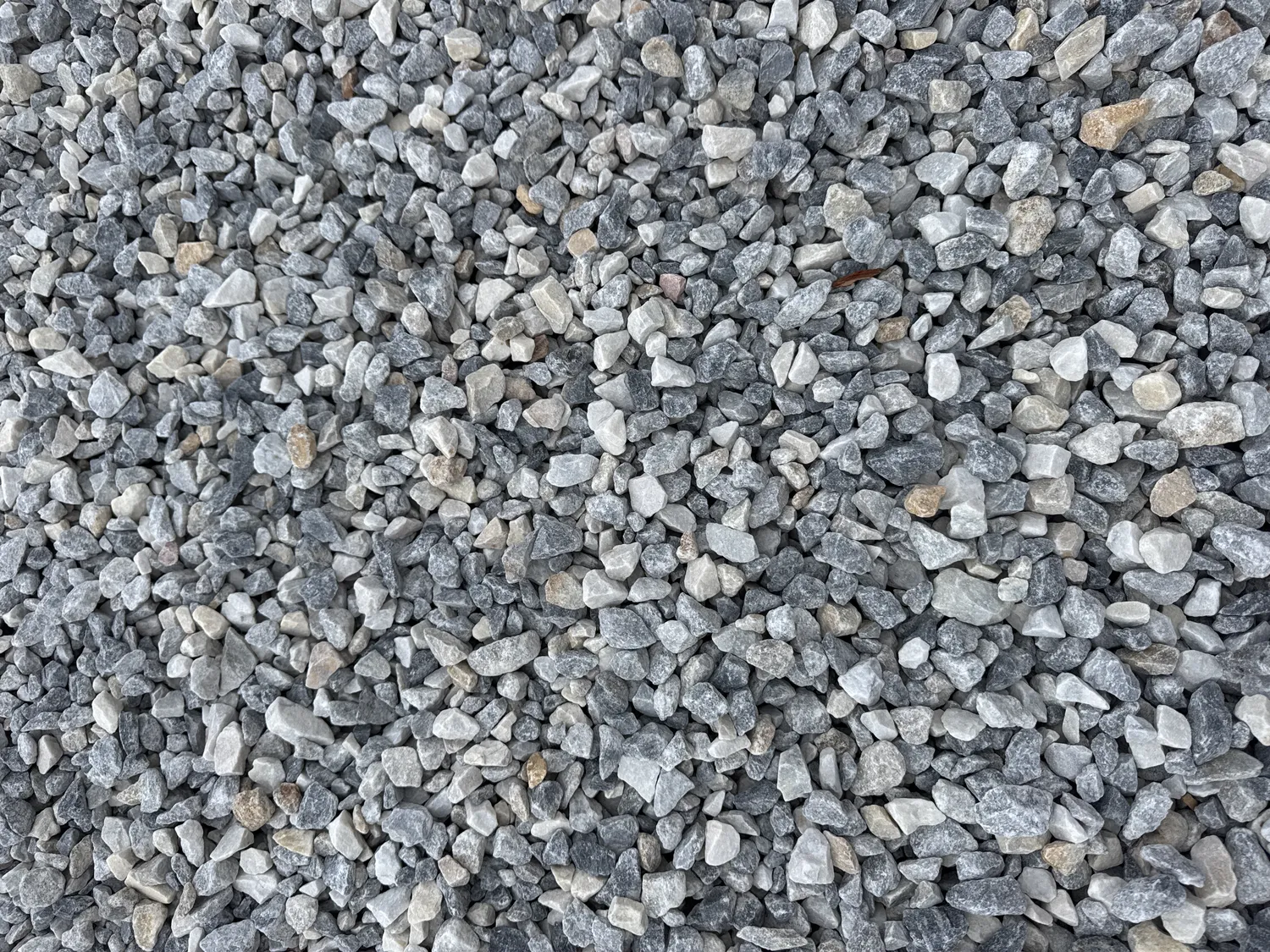 Silver is a decorative crushed stone featuring tones of light grey, white, and hints of blue/aqua, perfect for walkways, borders, or any landscaping areas.